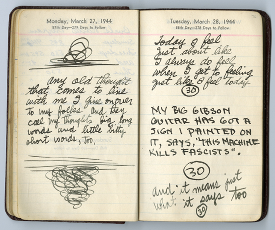 March 27-28, 1944 Diary entry by Woody Guthrie © Woody Guthrie Publications, Inc. Used by permission.